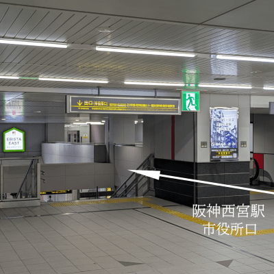 ① 阪神西宮駅の市役所口(東側の改札口)が最寄りの出口です。