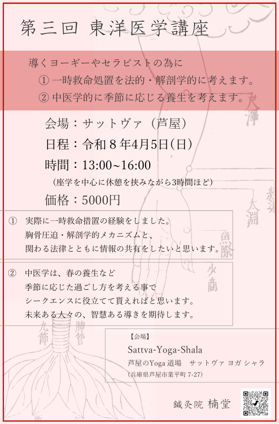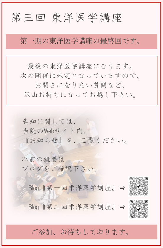 これをもって第一期の東洋医学講座として最終としたいと考えております。