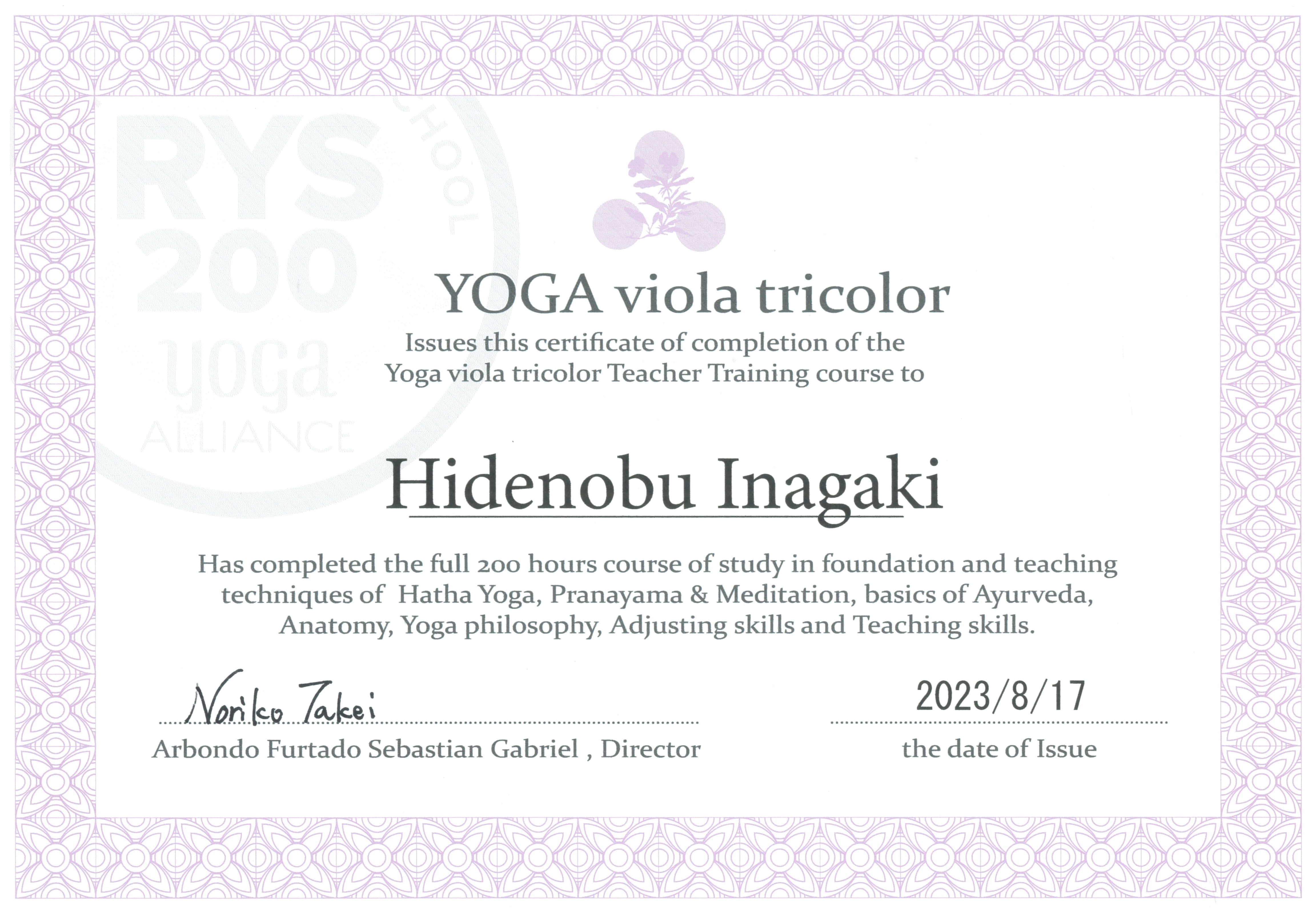 ・健康への理解の為、就学前よりYogaを始める。