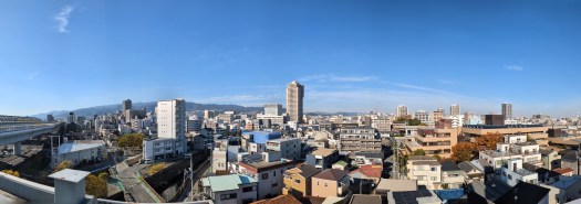 当ビルの屋上より虹のない六甲山を眺めてみました。